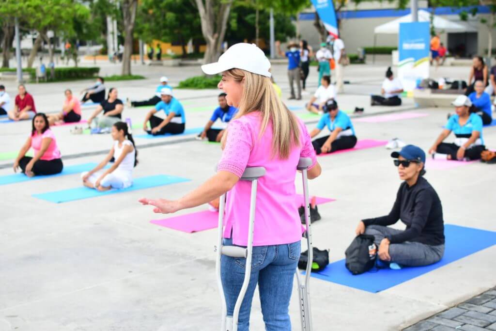 “Seguimos llegando a más plazas con nuestra estrategia ‘Vive la Plaza’ que busca llevar toda la oferta recreodeportiva para que la infraestructura que estamos recuperando en los municipios la usemos para el aprovechamiento del tiempo libre. Ahora estamos al frente de esta bella plaza de Puerto Colombia, cerca al mar, viendo cómo los instructores de Indeportes dirigen estas actividades, como yoga para cuidar la salud física y mental. También tenemos actividades como atletismo y, próximamente, patinaje. Todas las clases son gratuitas y no hay límite de edad”, indicó la mandataria.